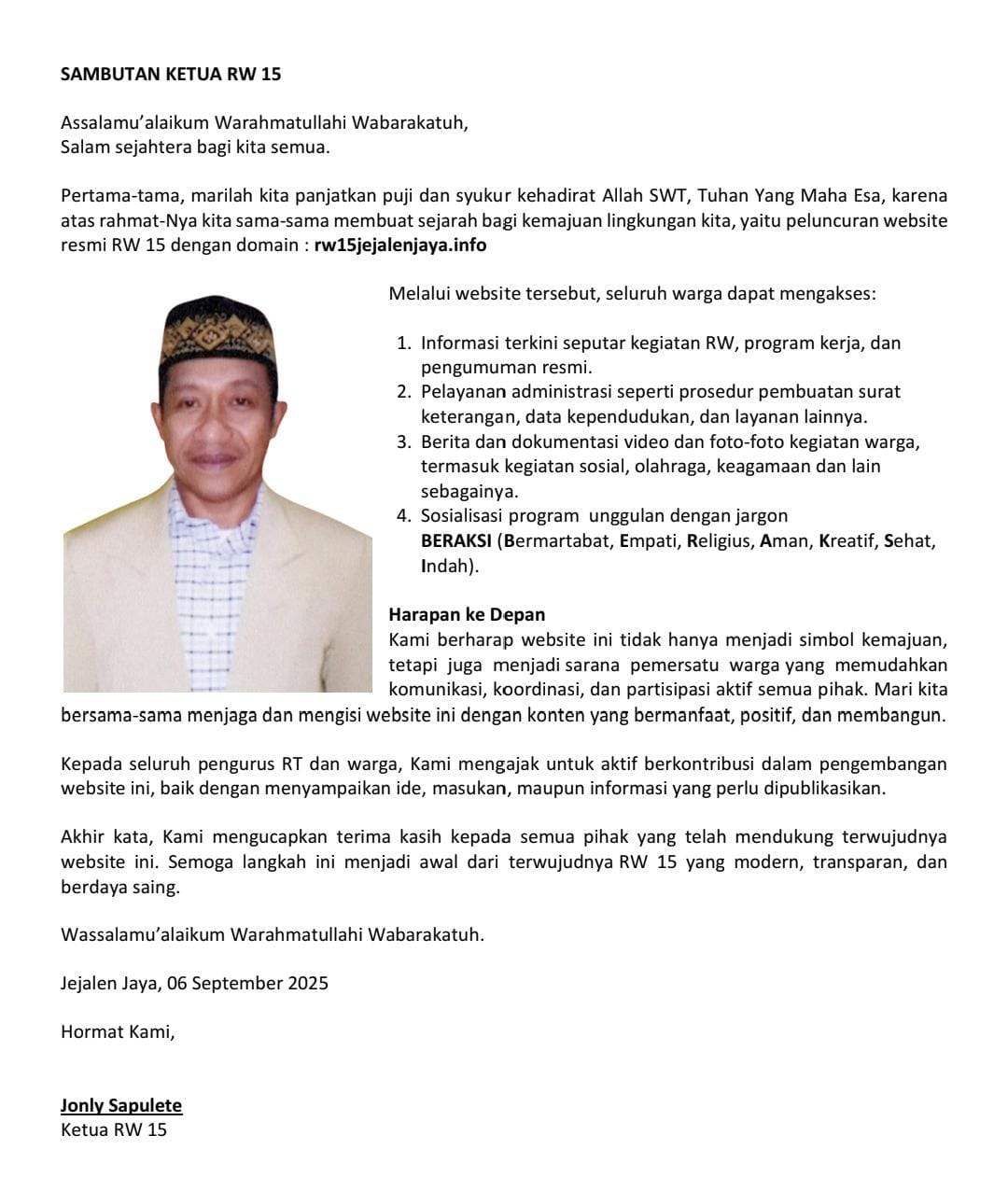 Dengan tauhid, pemahaman fikih yang benar, kesadaran amanah, dan adab Islam Nusantara, Jejalen Jaya diharapkan menjadi contoh desa yang mampu menyelenggarakan pemilihan yang bersih, bermartabat, dan berorientasi pada kemaslahatan bersama. Namun semua itu harus dimulai dengan proses yang transparan dan partisipatif sejak tahap paling awal.